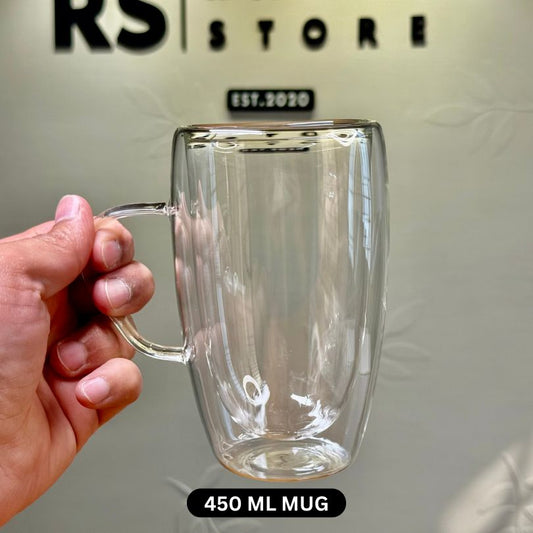 Premium Large 450ml Double Wall Glass Mug | No Heat, No Sweat, Just Pure Taste