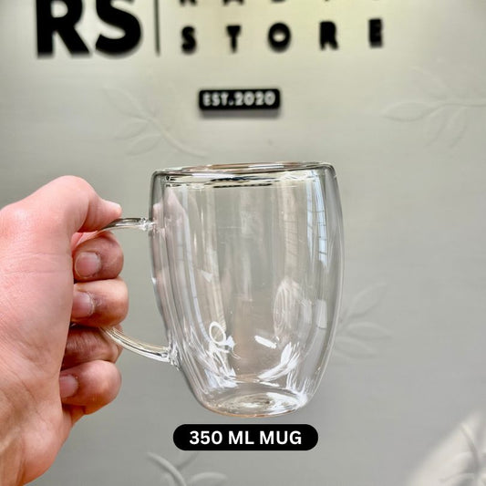Affordable Medium 350ml Double Wall Glass Mug | No Heat, No Sweat, Just Pure Taste
