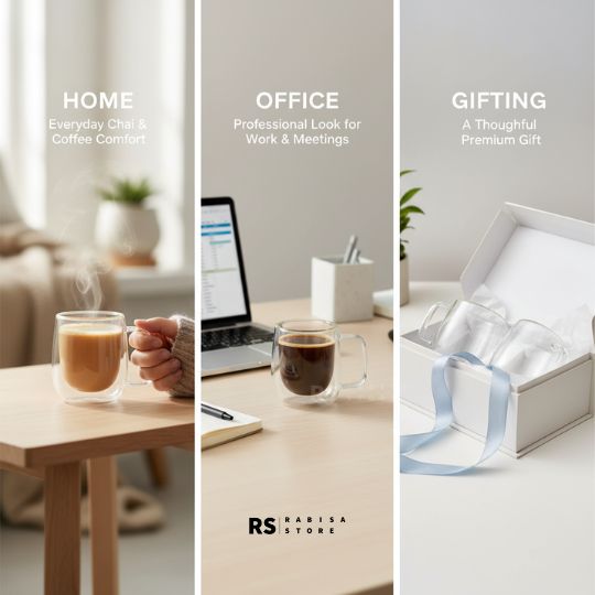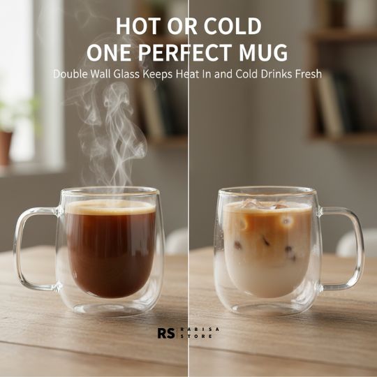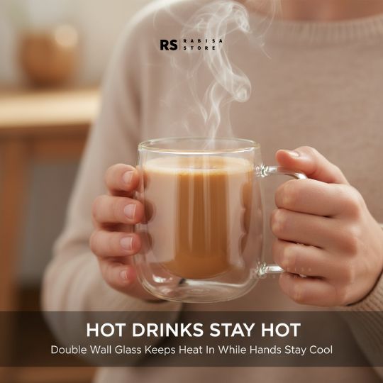 The double wall design keeps your drinks hot for longer while the outer surface stays cool to touch, so you can enjoy chai or coffee comfortably without burning your hands. It also prevents condensation with cold drinks, keeping your table clean.